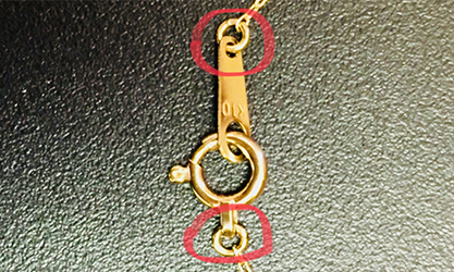 チェーンが抜けてしまう予防として、大切なネックレスや、高額なトップが付いている場合は購入したときに丸カンを完全に閉じる『ロー付け』に出すのもオススメです。