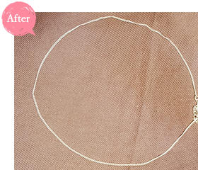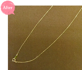今回のお客様は、数年前にアクセサリーショップで購入された比較的、長さのある可愛いペンダントをお持込になられました。 アパレルで働いていた当時は身に着けていましたが、アクセサリーを身に着けられない職場に転職し、着ける機会がなく、しまっておいたらネックレスが変色したとの事です。